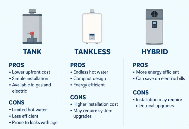 Whether your current unit needs repair, replacement, or a full upgrade, Potty Doctor will recommend the best solution for your property. Tank water heaters provide steady, consistent hot water, while tankless systems deliver energy savings and endless hot water on demand.
